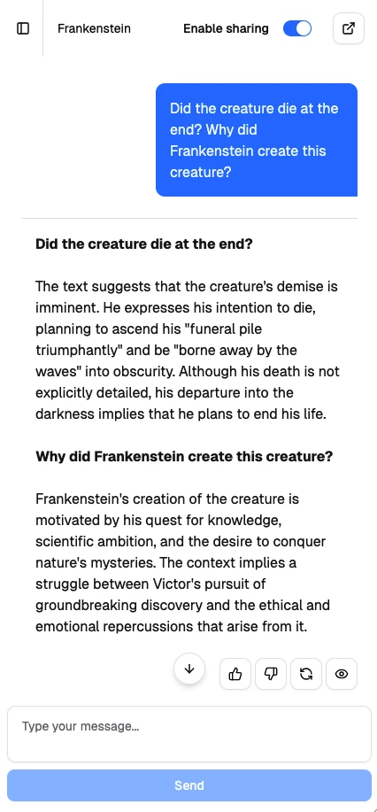 Ask anything and get answers grounded in the actual text of the book you're reading.